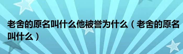 关于老舍的原名叫什么他被誉为什么,老舍的原名叫什么这个很多人还不知道,今天菲菲来为大家解答以上的问题,现在让我们一起来看看吧!