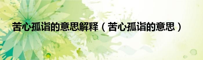 关于苦心孤诣的意思解释,苦心孤诣的意思这个很多人还不知道,今天菲菲来为大家解答以上的问题,现在让我们一起来看看吧!