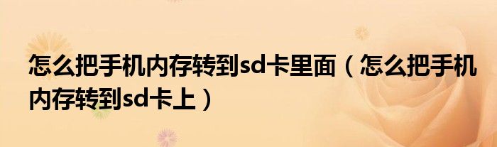 关于怎么把手机内存转到sd卡里面,怎么把手机内存转到sd卡上这个很多人还不知道,今天菲菲来为大家解答以上的问题,现在让我们一起来看看吧!